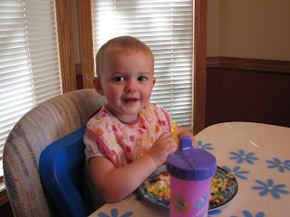 Our big girl ate at the table with us for the first time last night.