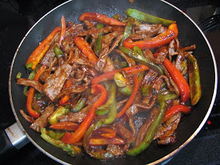 3. Turn the heat down to medium. Cook the peppers and onion for just a few minutes, until they are tender crisp.