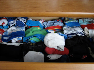 To find out I did what any mama would do…..I took a few pairs out and made him fold them in front of me to prove that he was the one who did it.