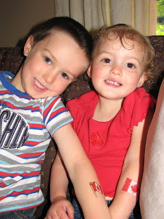 I put a Canada tat on my little A's arm too. She kept checking it out and would run up to her Daddy and exclaim "TATTOO!!" Um, don't get too attached to that idea there sweetie 🙂