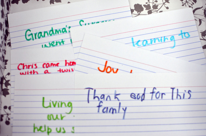 I love seeing my little guys writing on some of the cards, and plan to have the girls draw pictures for things that they are thankful for.
