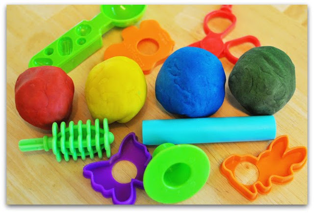 After that we always seemed to have plenty to go around. Somehow, though, over time the colors “magically” got mixed together and some of the lids didn’t get put on properly. My three year old was also really good at getting into the playdough no matter how hard I tried to “hide” it. It’s like she could just sniff it out and on more than one occasion I found her in a sea of playdough. Fun times.